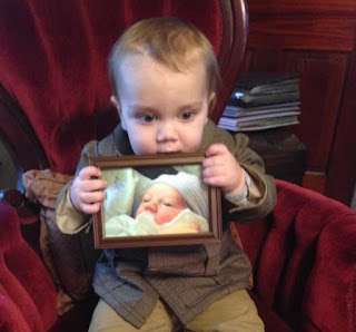 He's Holding his Newborn Picture. Sideways... but hey, A mother takes what she can get! lol!